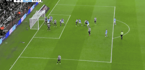 第49分钟,阿克45度传中,努内斯没能顶到皮球却晃了戈登一下,差点造成戈登的自摆乌龙。